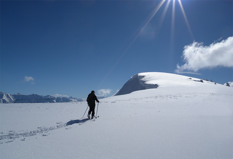 Peiner, aller vite, courir jusqu'au sommet ? Non : avancer à son rythme dans la somptuosité du blanc, méditer pas à pas pour un peu plus de sagesse et un peu plus de lumière, qu'elle soit poétique, noétique ou simplement solaire. Voilà le but de l'Épicurien des cimes.